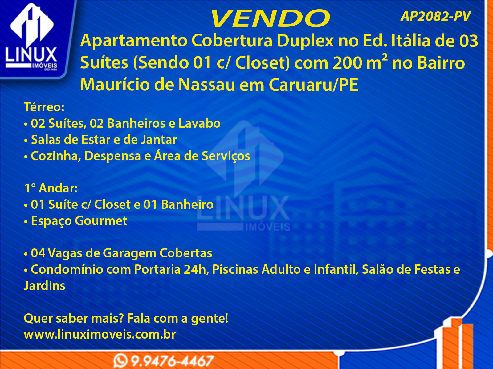 Apartamento Cobertura Duplex no Ed. Itália em Caruaru/PE à Venda (AP2082-PV)
