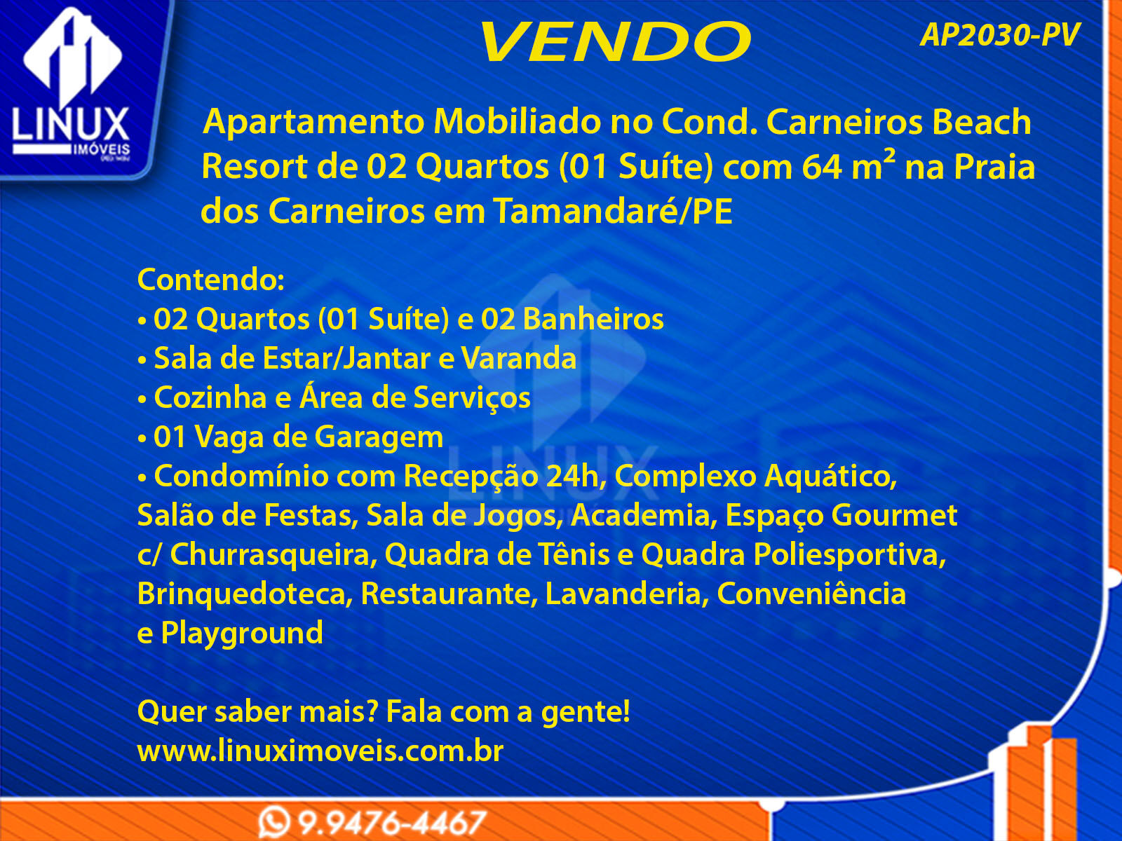 Apartamento Mobiliado no Cond. Carneiros Beach Resort em Tamandaré/PE à Venda (AP2030-PV)