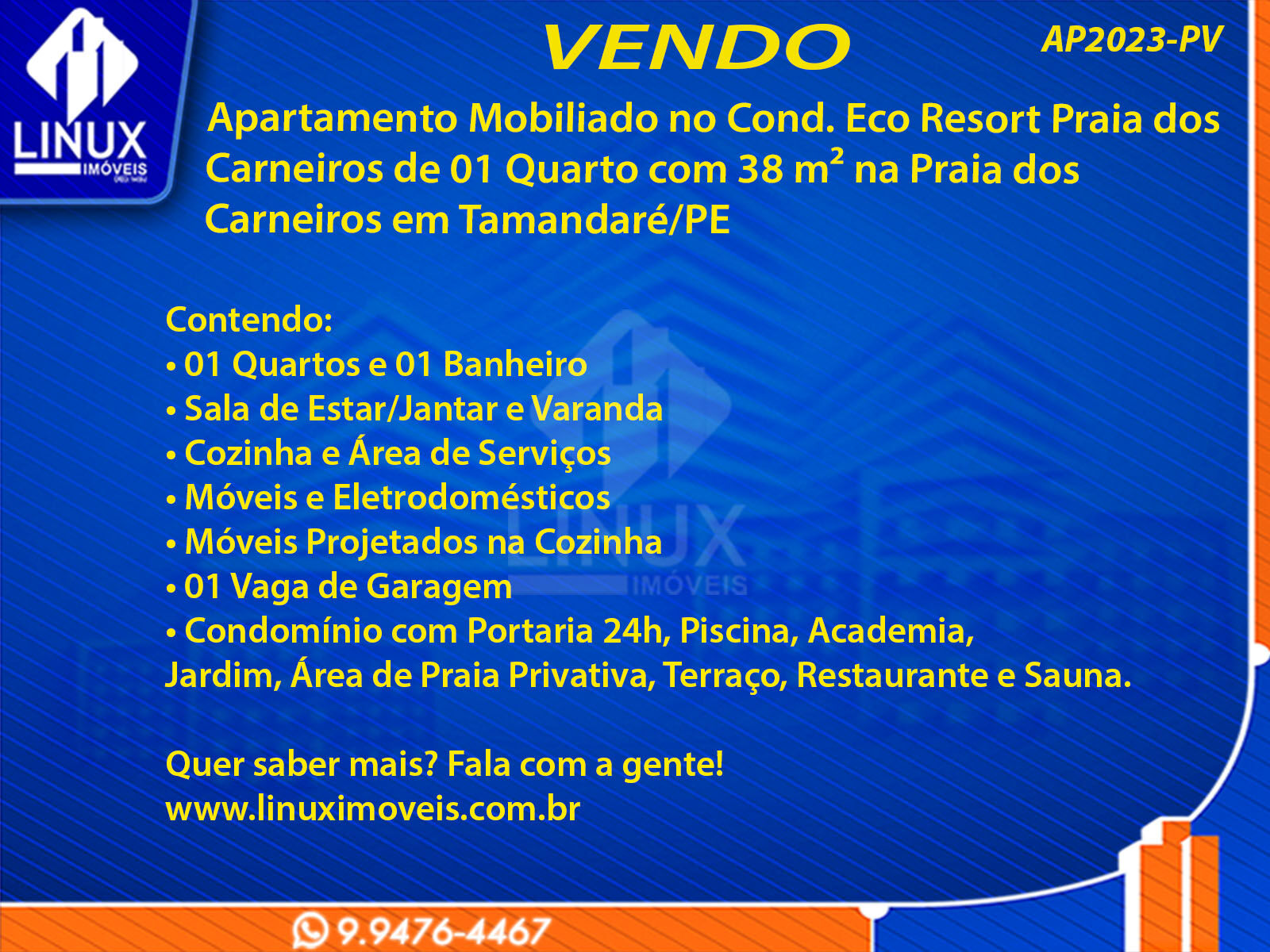 Apartamento Mobiliado no Cond. Eco Resort Praia dos Carneiros na Praia dos Carneiros em Tamandaré/PE à Venda (AP2023-PV)