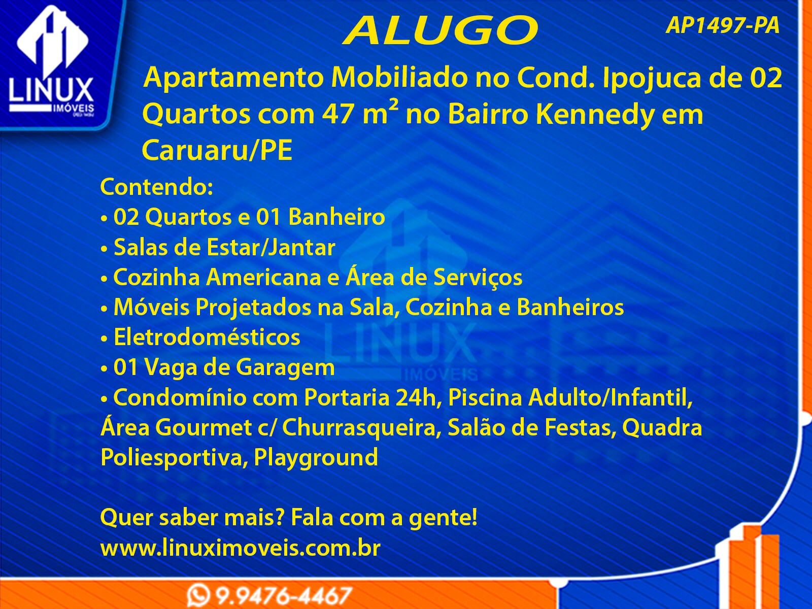 R$1.300,00 / ALUGUELApartamento Mobiliado no Cond. Ipojuca em Caruaru/PE p/ Locação (AP1497-PA)