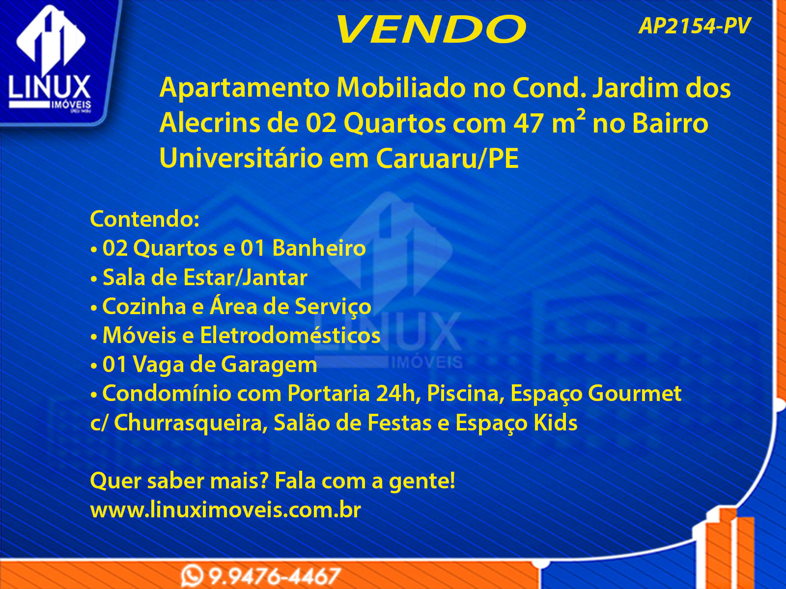 R$240.000,00 / VENDAApartamento Mobiliado no Cond. Jardim dos Alecrins em Caruaru/PE à Venda (AP2154-PV)