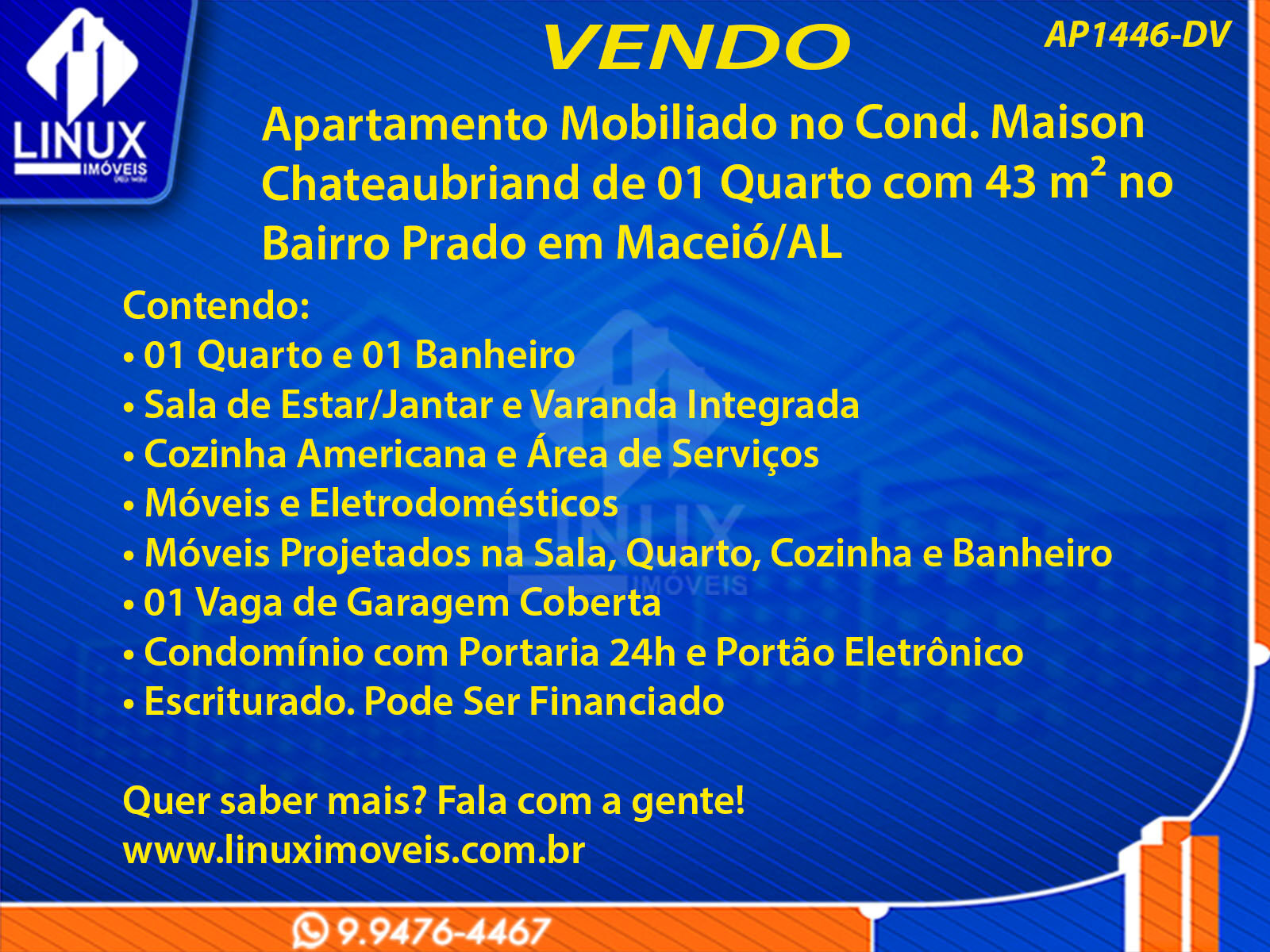 Apartamento Mobiliado no Cond. Maison Chateaubriand em Maceió/AL à Venda (AP1446-DV)