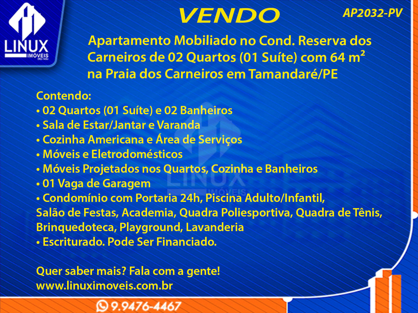Apartamento Mobiliado no Cond. Reserva dos Carneiros em Tamandaré/PE à Venda (AP2032-PV)