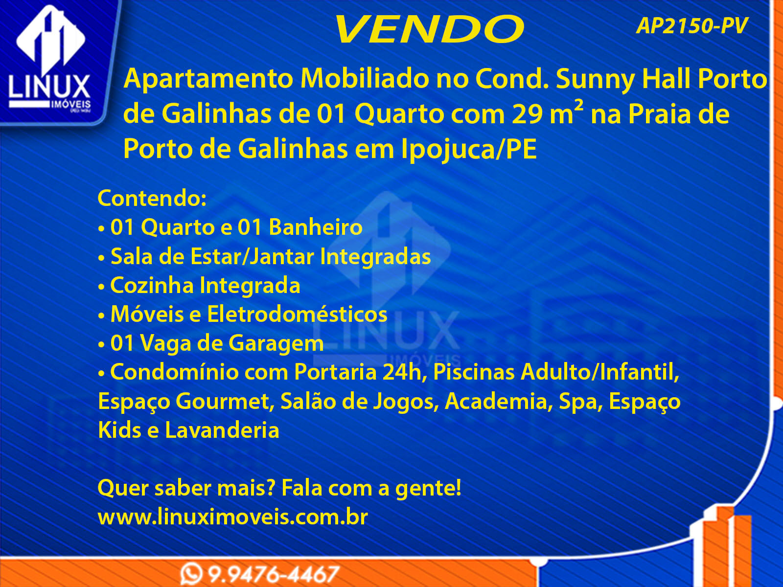 Apartamento Mobiliado no Cond. Sunny Hall Porto de Galinhas em Ipojuca/PE à Venda (AP2150-PV)