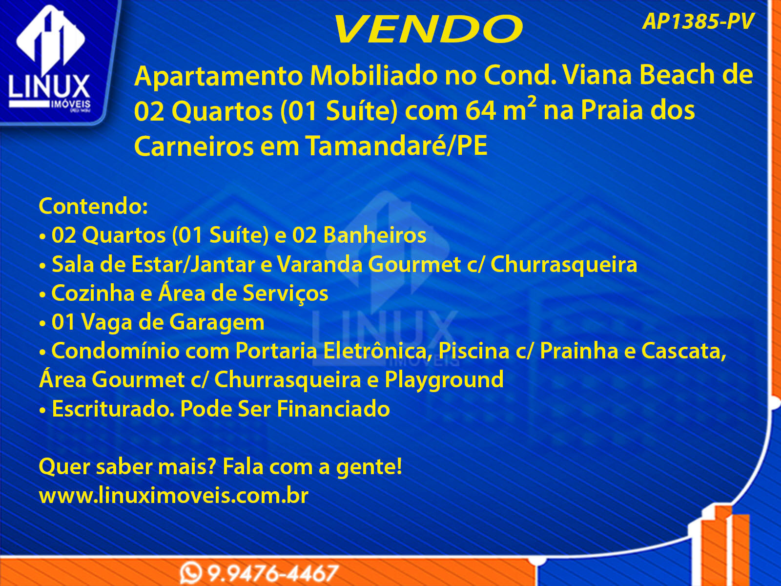 Apartamento Mobiliado no Cond. Viana Beach na Praia dos Carneiros em Tamandaré/PE à Venda (AP1385-PV)