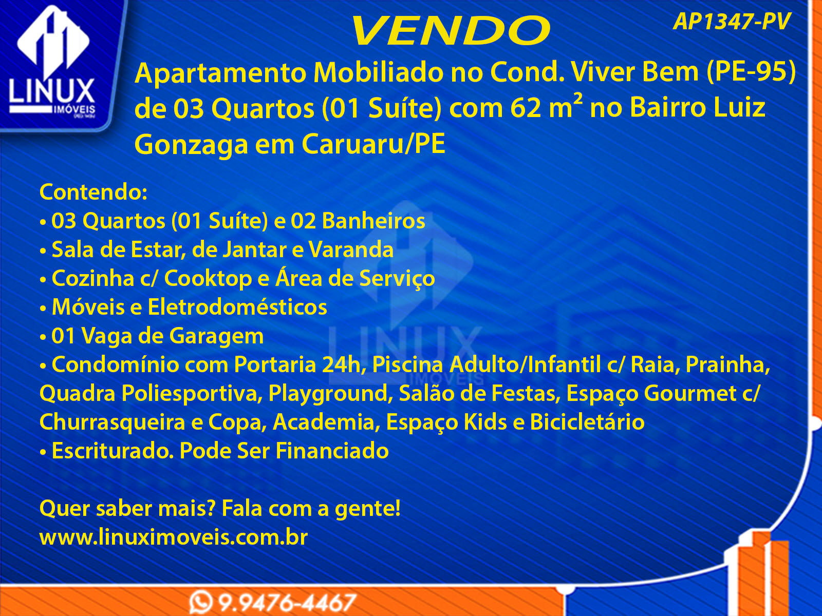 Apartamento Mobiliado no Cond. Viver Bem (PE-95) em Caruaru/PE à Venda (AP1347-PV)