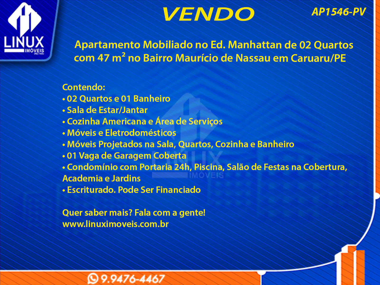 Apartamento Mobiliado no Ed. Manhattan em Caruaru/PE à Venda (AP1546-PV)