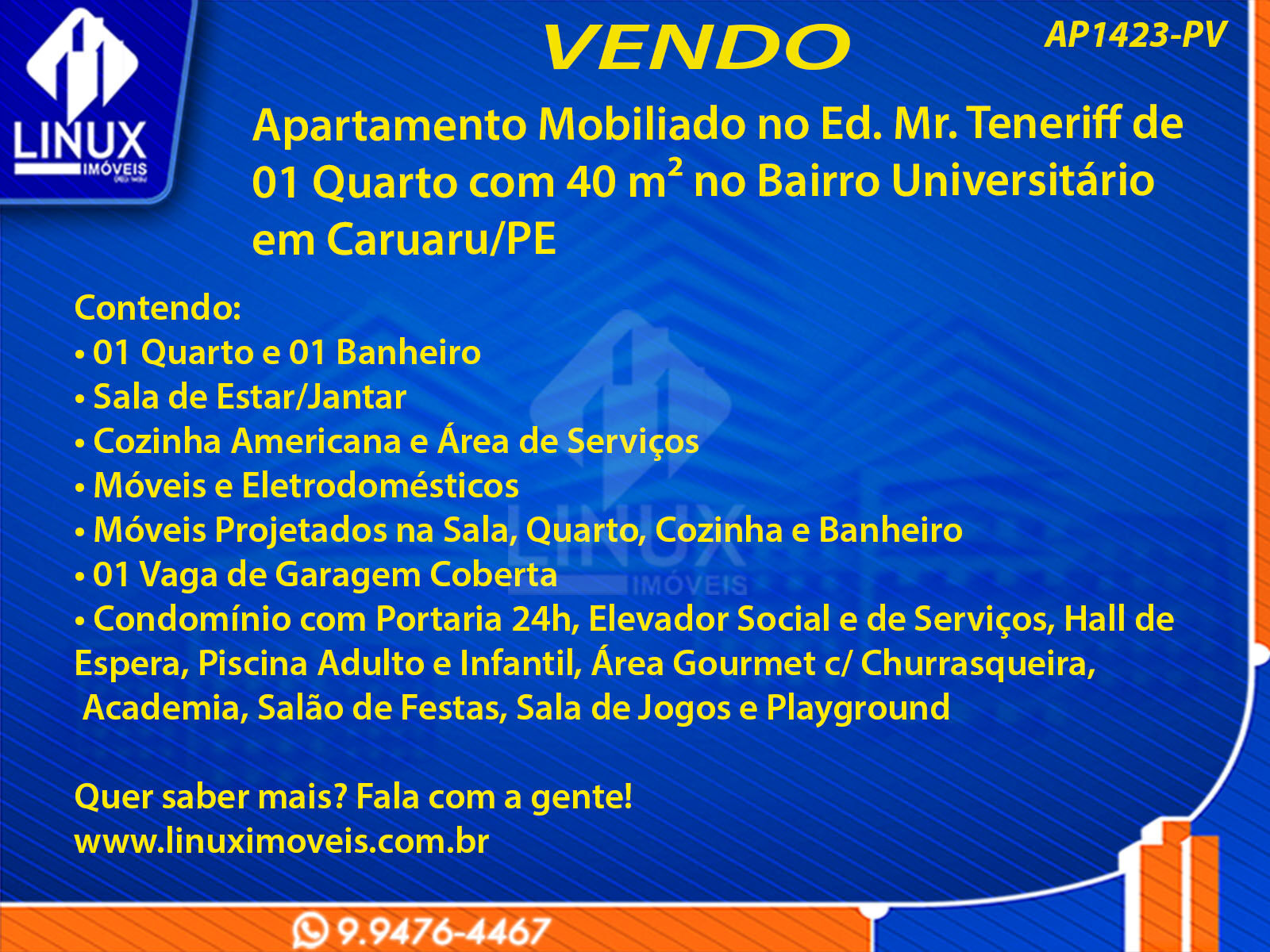 Apartamento Mobiliado no Ed. Mr. Teneriff em Caruaru/PE à Venda (AP1423-PV)