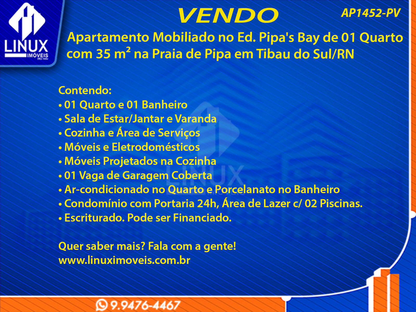 R$385.000,00 / VENDAApartamento Mobiliado no Ed. Pipa's Bay em Tibau do Sul/RN à Venda (AP1452-PV)