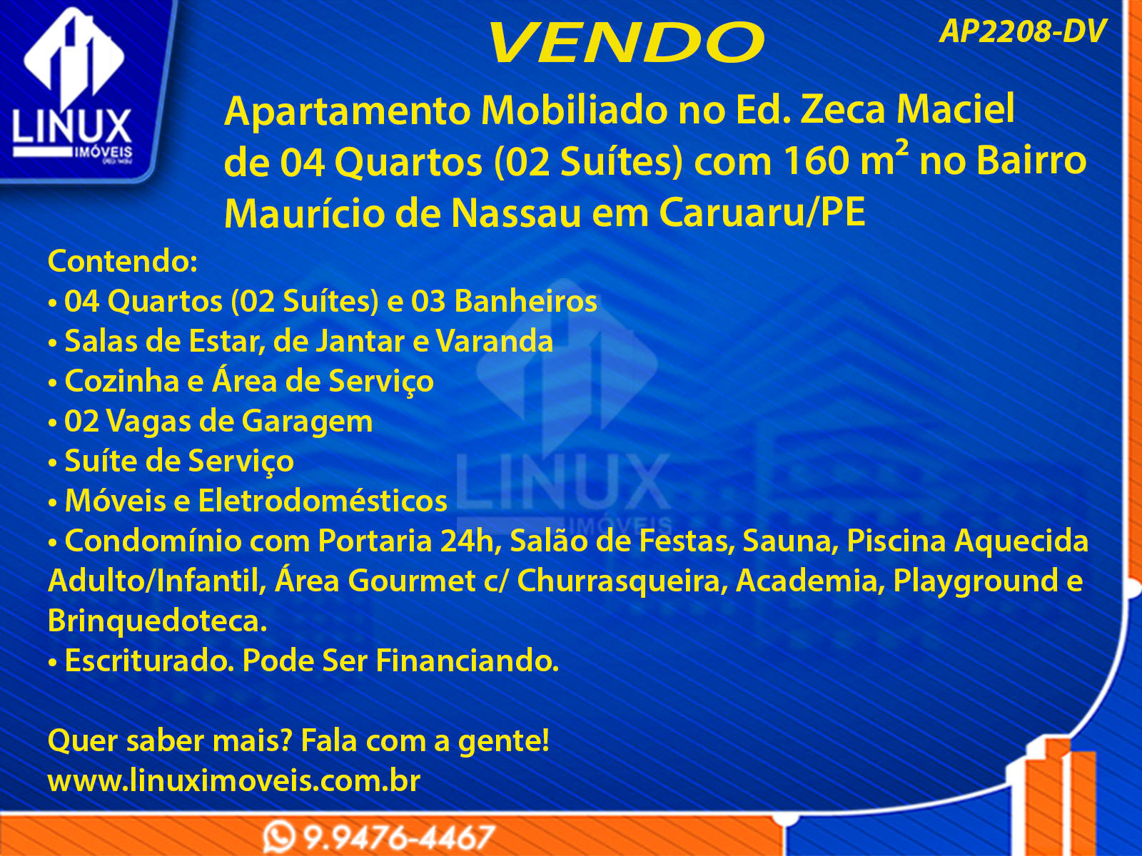 Apartamento Mobiliado no Ed. Zeca Maciel em Caruaru/PE à Venda (AP2208-DV)