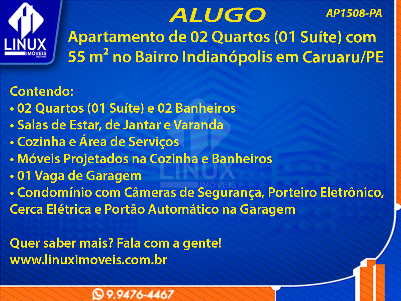R$1.000,00 / ALUGUELApartamento no Bairro Indianópolis em Caruaru/PE p/ Locação (AP1508-PA)