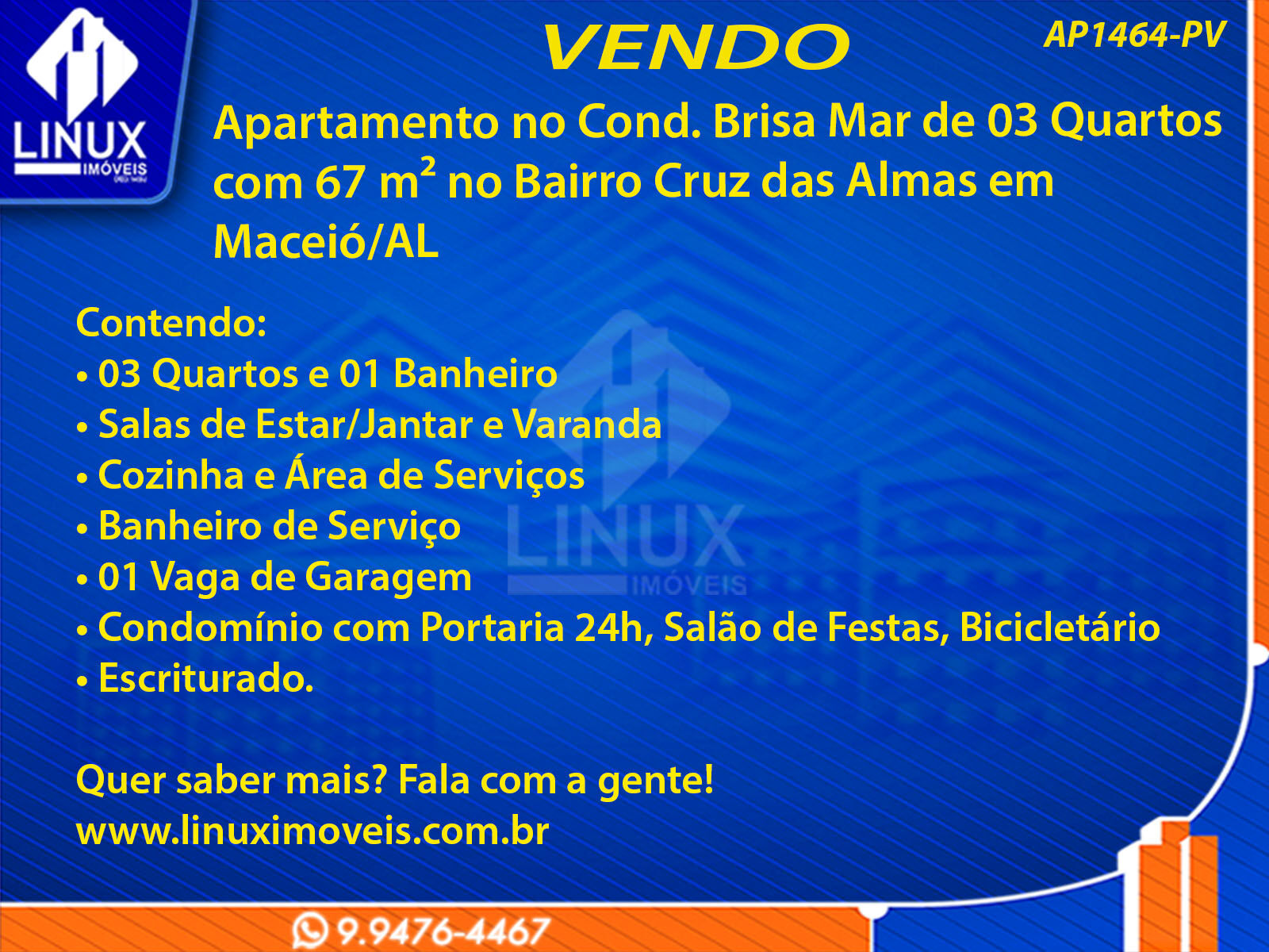 Apartamento no Cond. Brisa Mar em Maceió/AL à Venda (AP1464-PV)