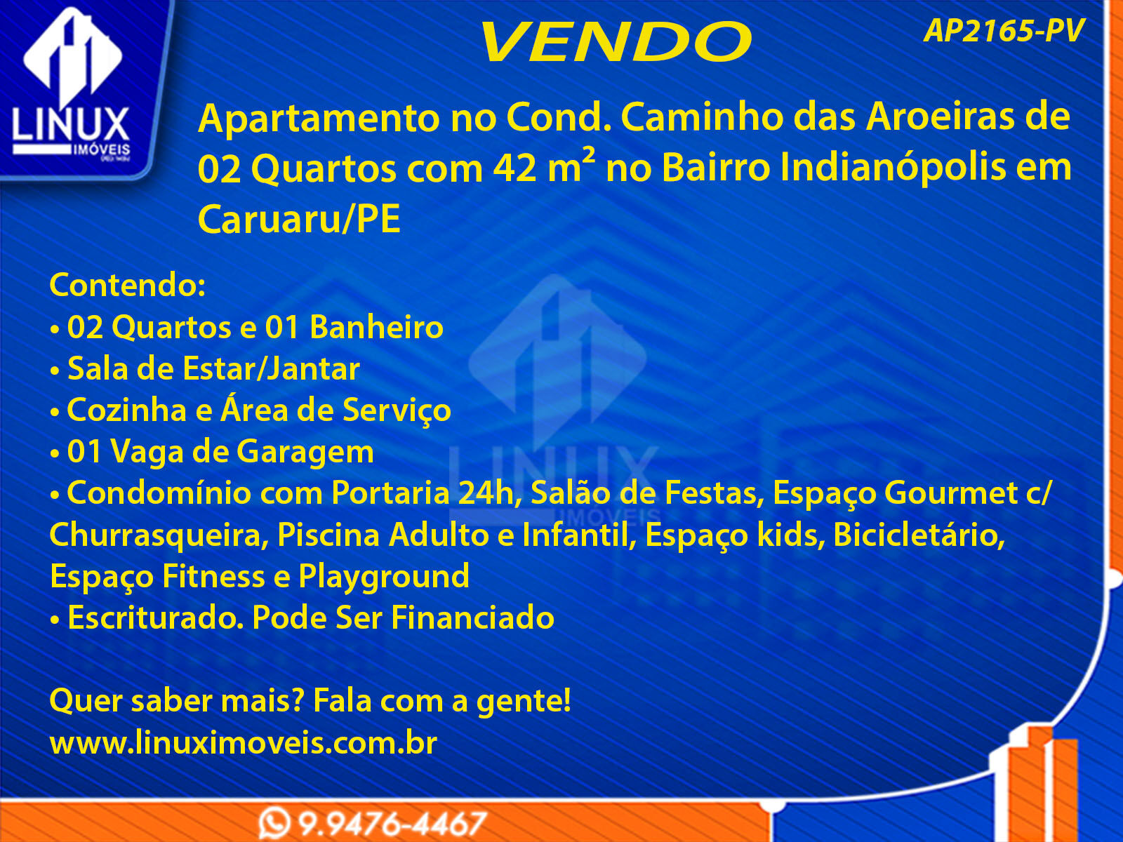 R$195.000,00 / VENDAApartamento no Cond. Caminho das Aroeiras em Caruaru/PE à Venda (AP2165-PV)