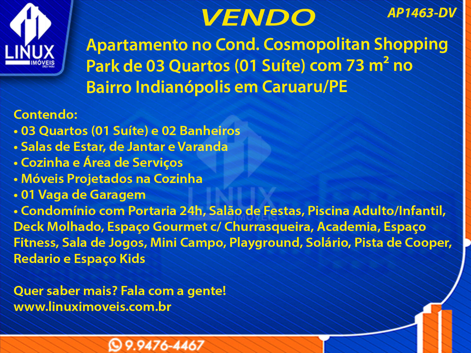 Apartamento no Cond. Cosmopolitan Shopping Park em Caruaru/PE à Venda (AP1463-DV)