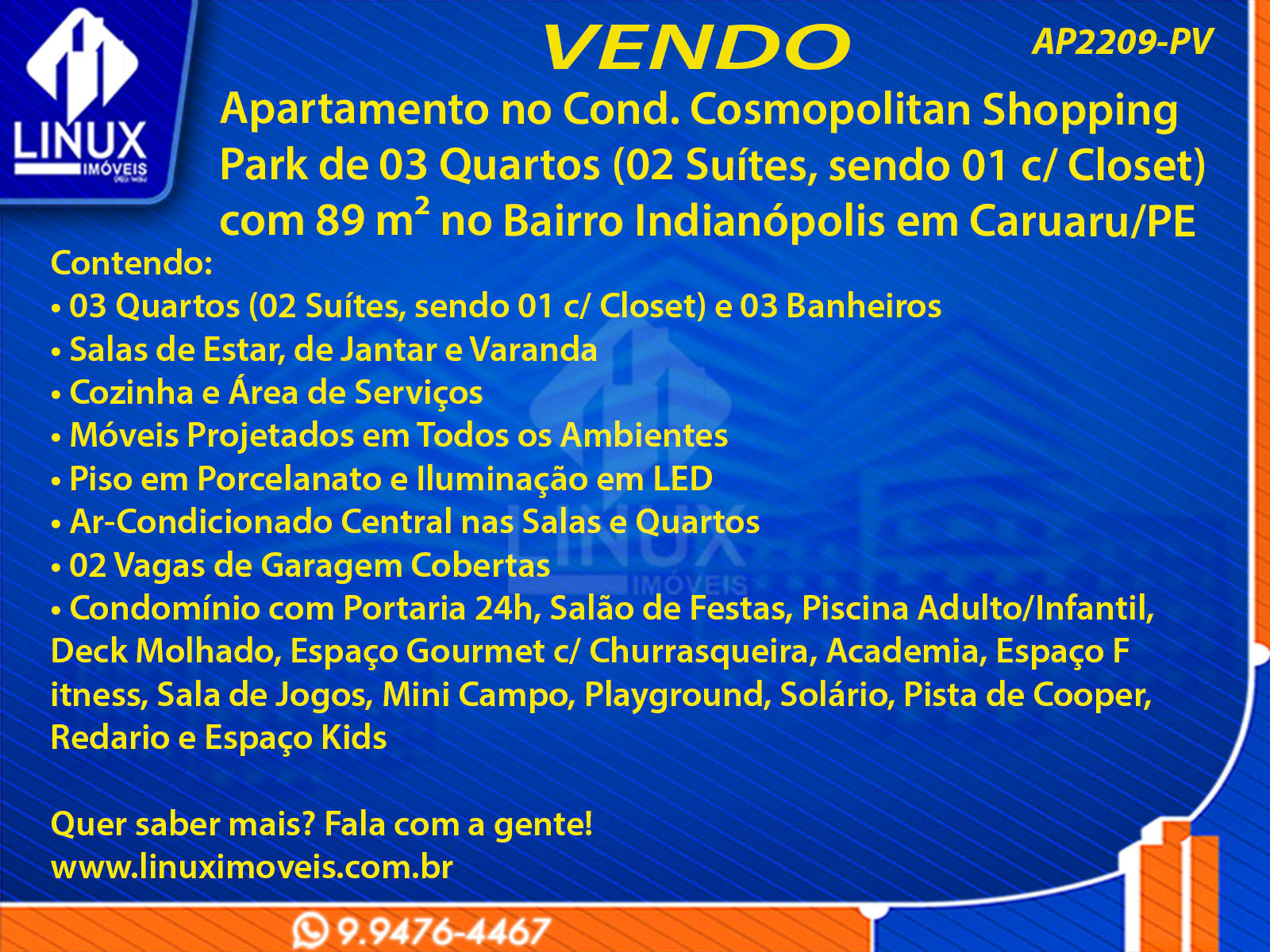 Apartamento no Cond. Cosmopolitan Shopping Park em Caruaru/PE à Venda (AP2209-PV)