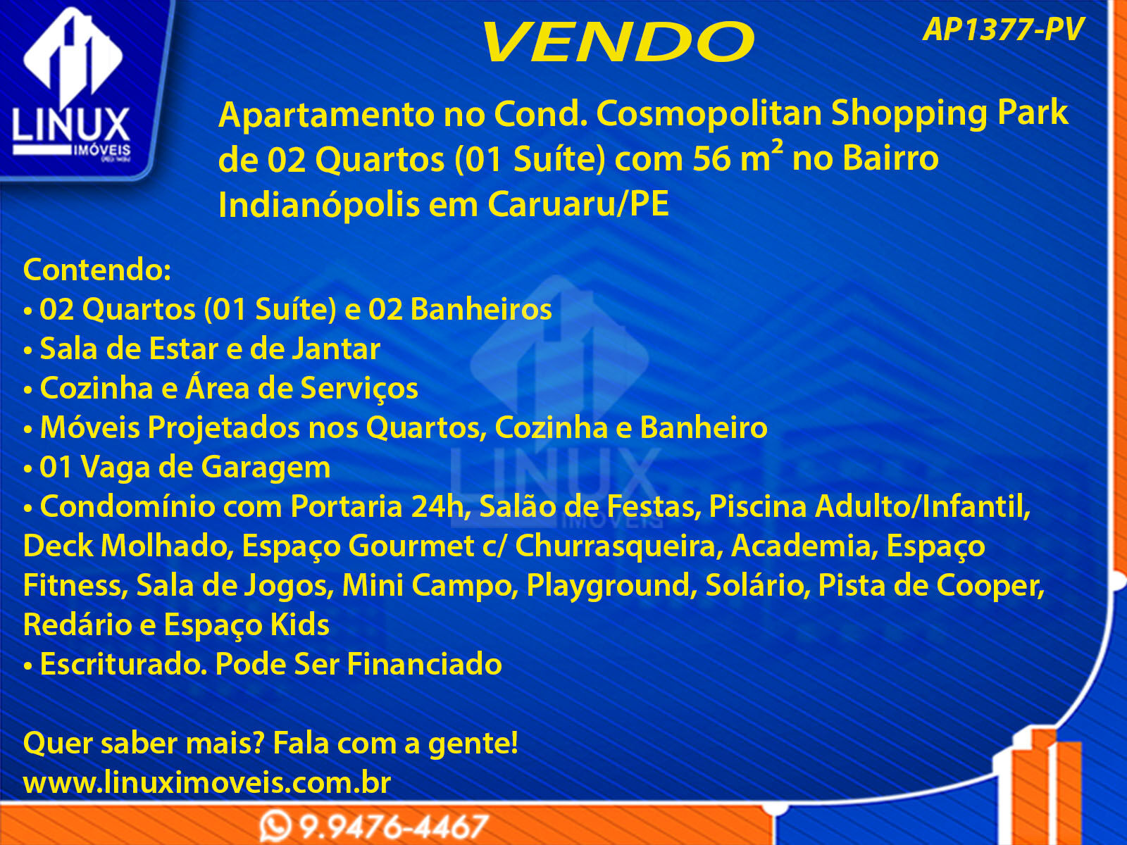 Apartamento no Cond. Cosmopolitan Shopping Park em Caruaru/PE à Venda (AP1277-PV)