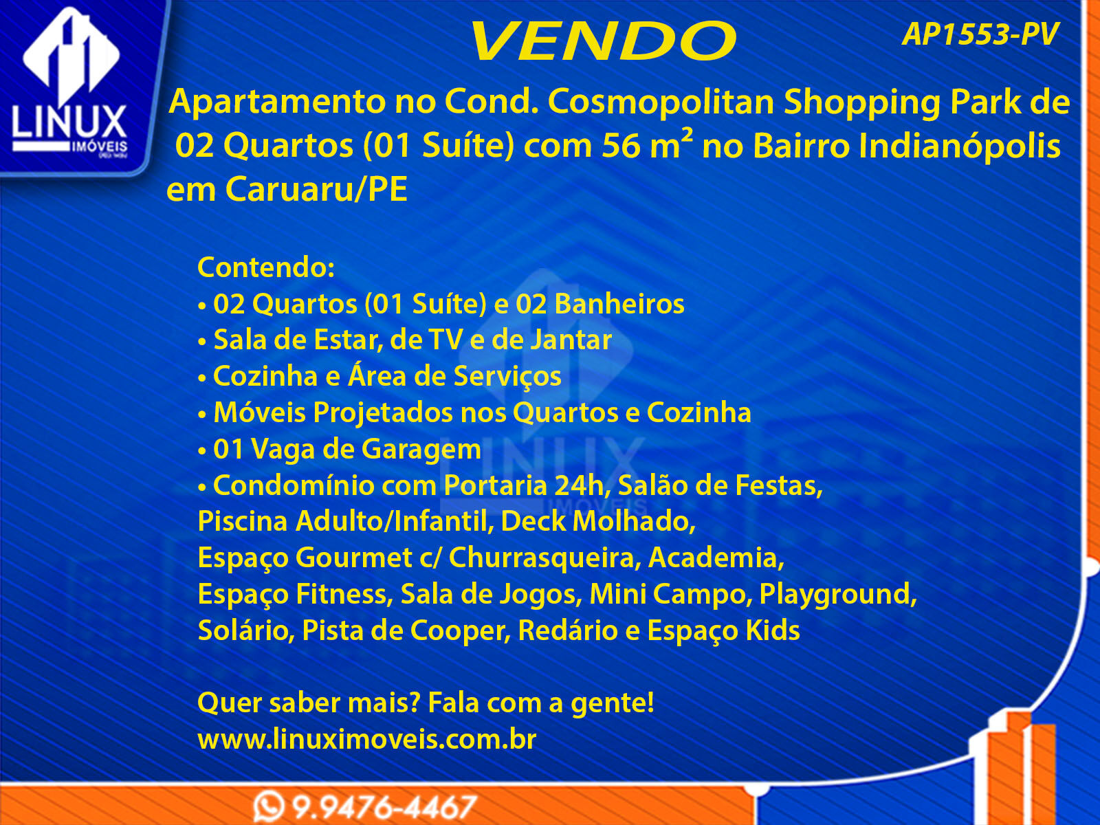 Apartamento no Cond. Cosmopolitan Shopping Park em Caruaru/PE à Venda (AP1553-PV)