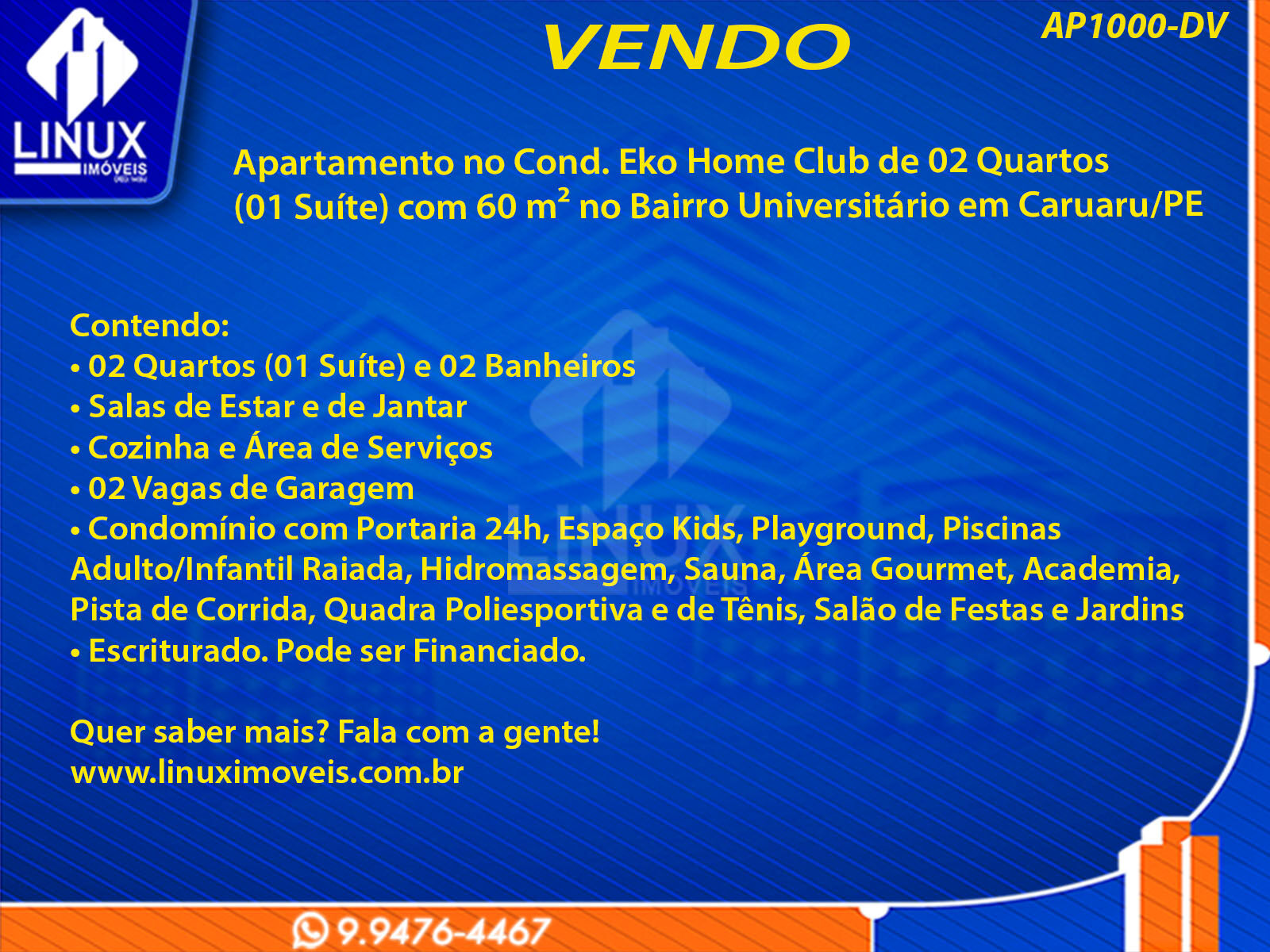Apartamento no Cond. Eko Home Club à Venda (AP1000-DV)