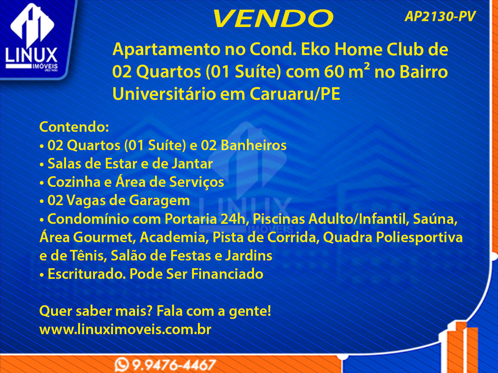 Apartamento no Cond. Eko Home Club em Caruaru/PE à Venda (AP2130-PV)