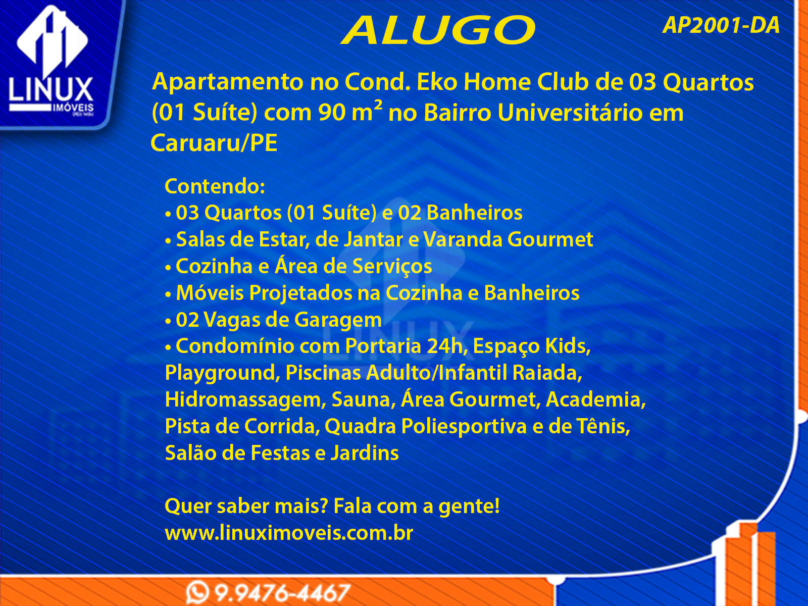 R$2.300,00 / ALUGUELApartamento no Cond. Eko Home Club em Caruaru/PE p Locação (AP2001-DA)