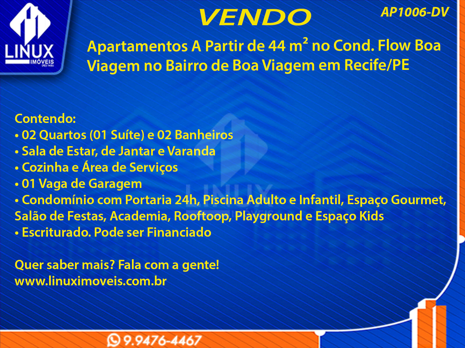Apartamentos no Cond. Flow Boa Viagem em Recife/PE à Venda (AP1006-DV)
