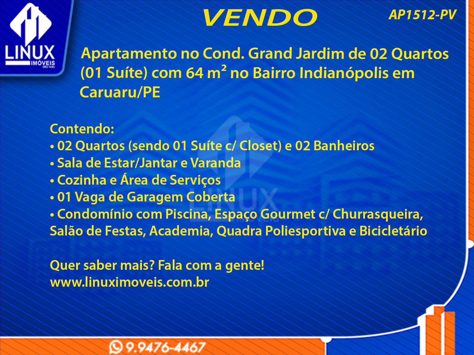 Apartamento no Cond. Grand Jardim em Caruaru/PE à Venda (AP1512-PV)