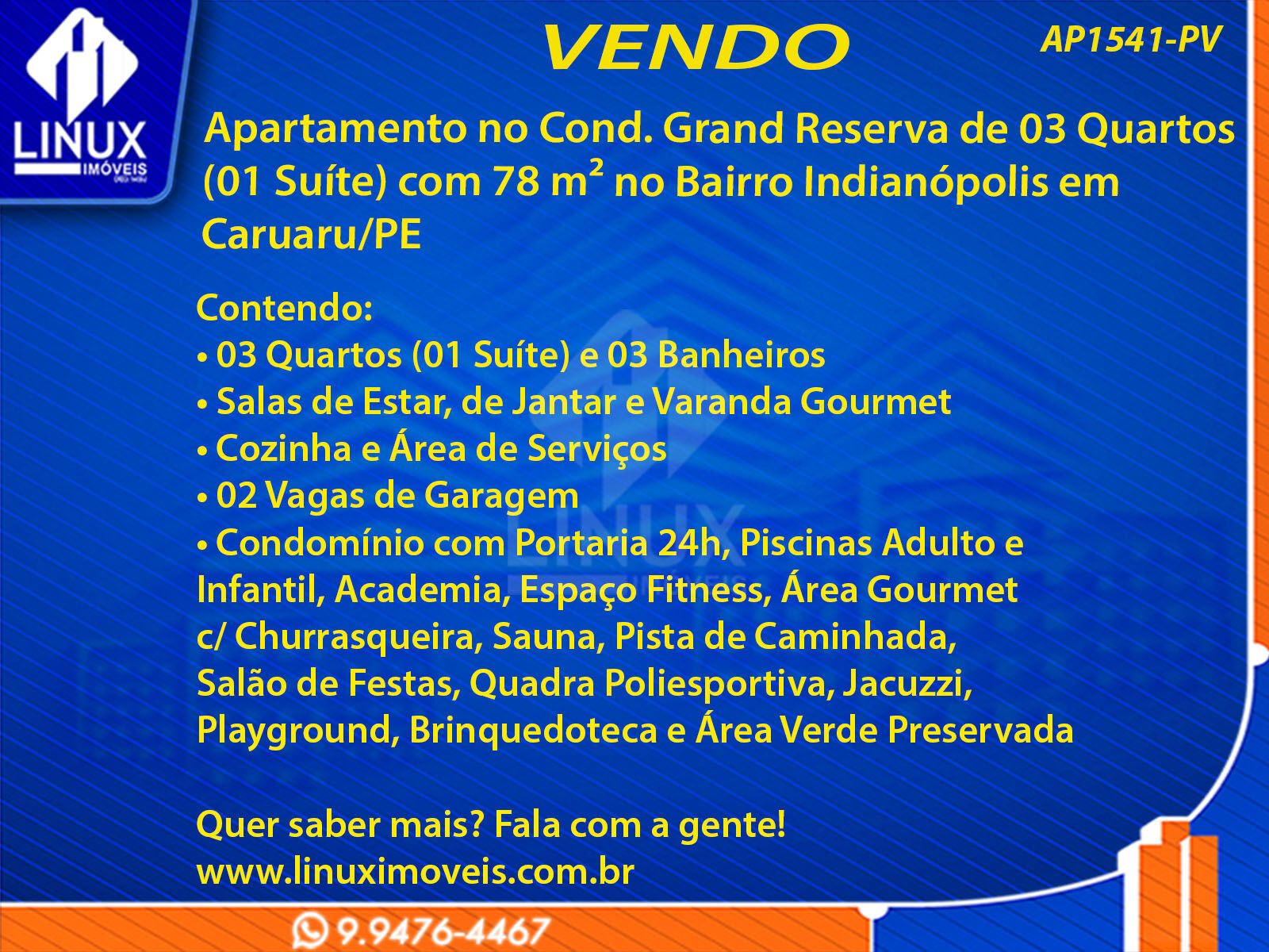 Apartamento no Cond. Grand Reserva em Caruaru/PE à Venda (AP1541-PV)