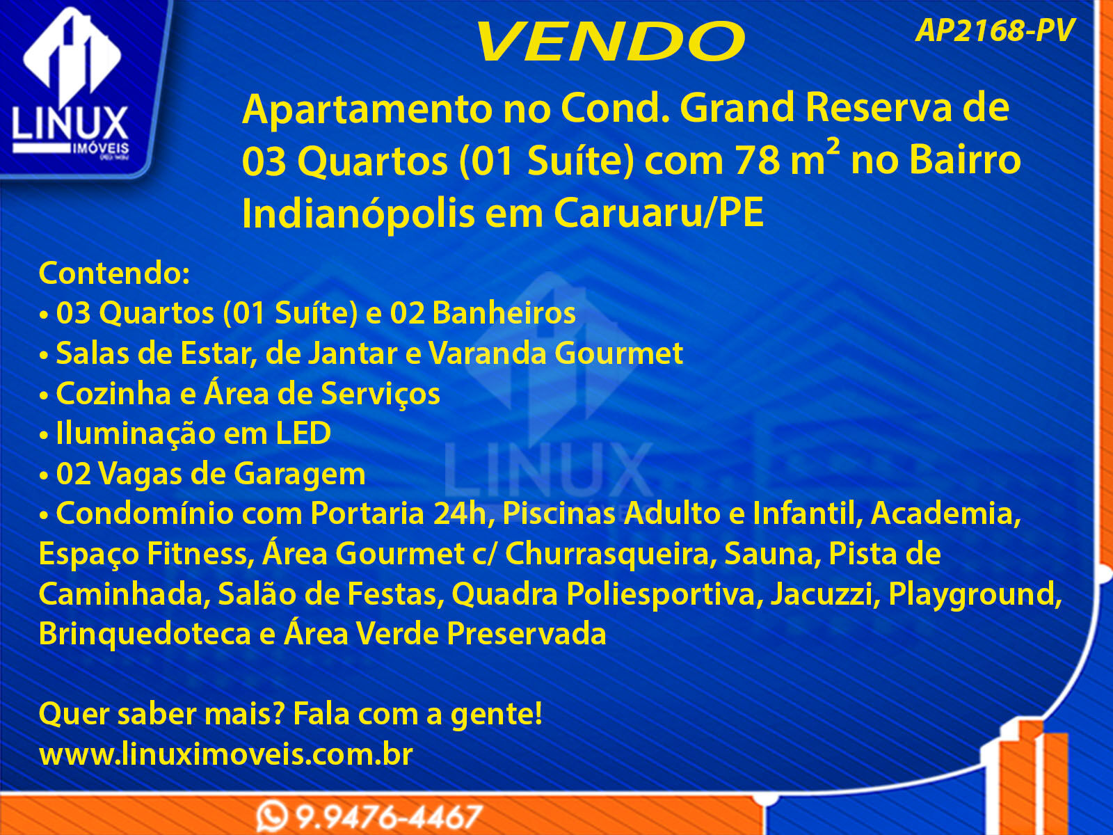 Apartamento no Cond. Grand Reserva em Caruaru/PE à Venda (AP2168-PV)