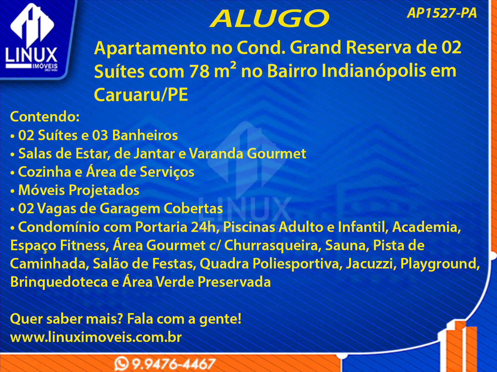 Apartamento no Cond. Grand Reserva em Caruaru/PE p/ Locação (AP1527-PA)