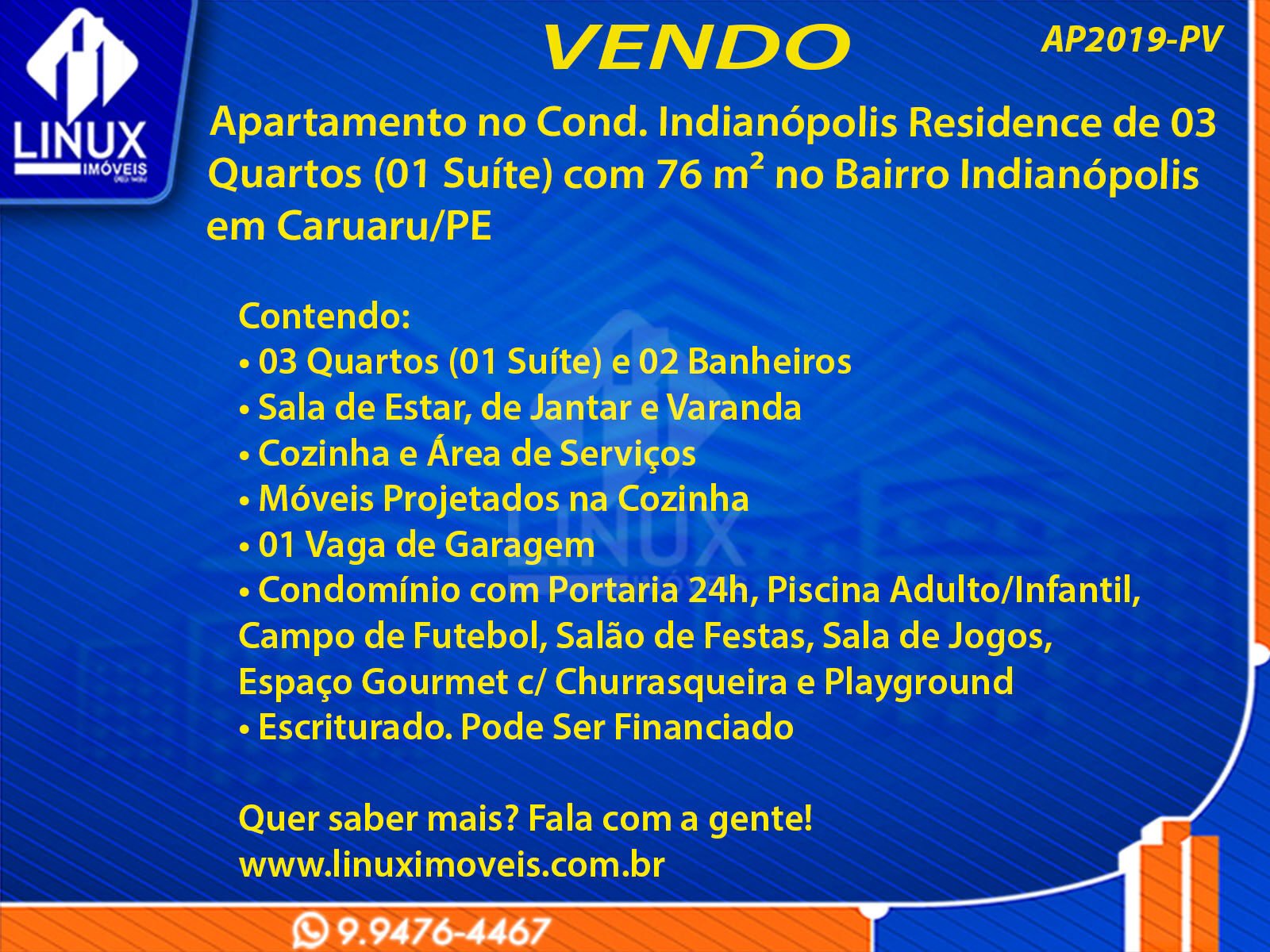 Apartamento no Cond. Indianópolis Residence em Caruaru/PE à Venda (AP2019-PV)