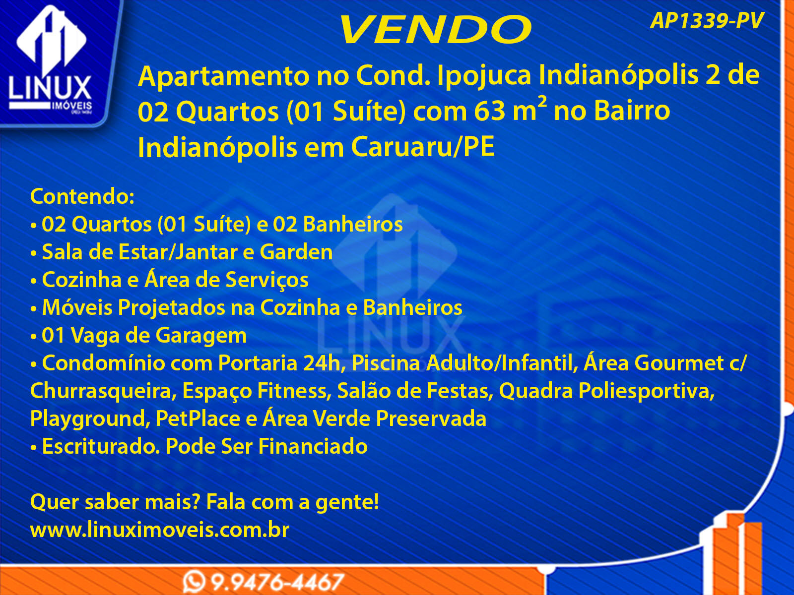 Apartamento no Cond. Ipojuca Indianópolis 2 em Caruaru/PE à Venda (AP1339-PV)