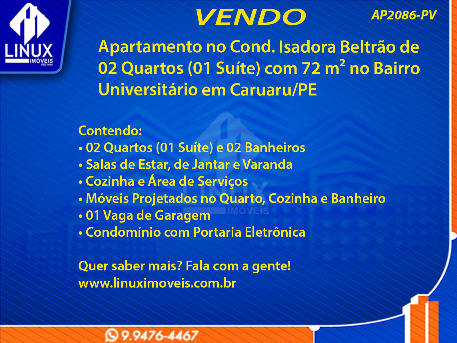R$265.000,00 / VENDAApartamento no Cond. Isadora Beltrão em Caruaru/PE à Venda (AP2086-PV)