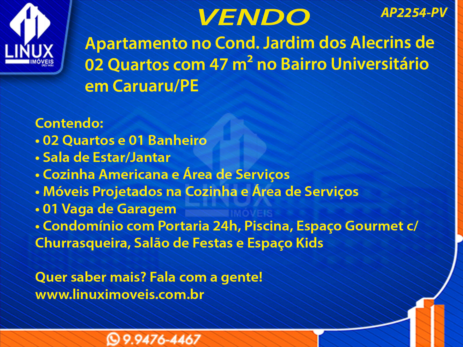 R$240.000,00 / VENDAApartamento no Cond. Jardim dos Alecrins em Caruaru/PE à Venda (AP2254-PV)