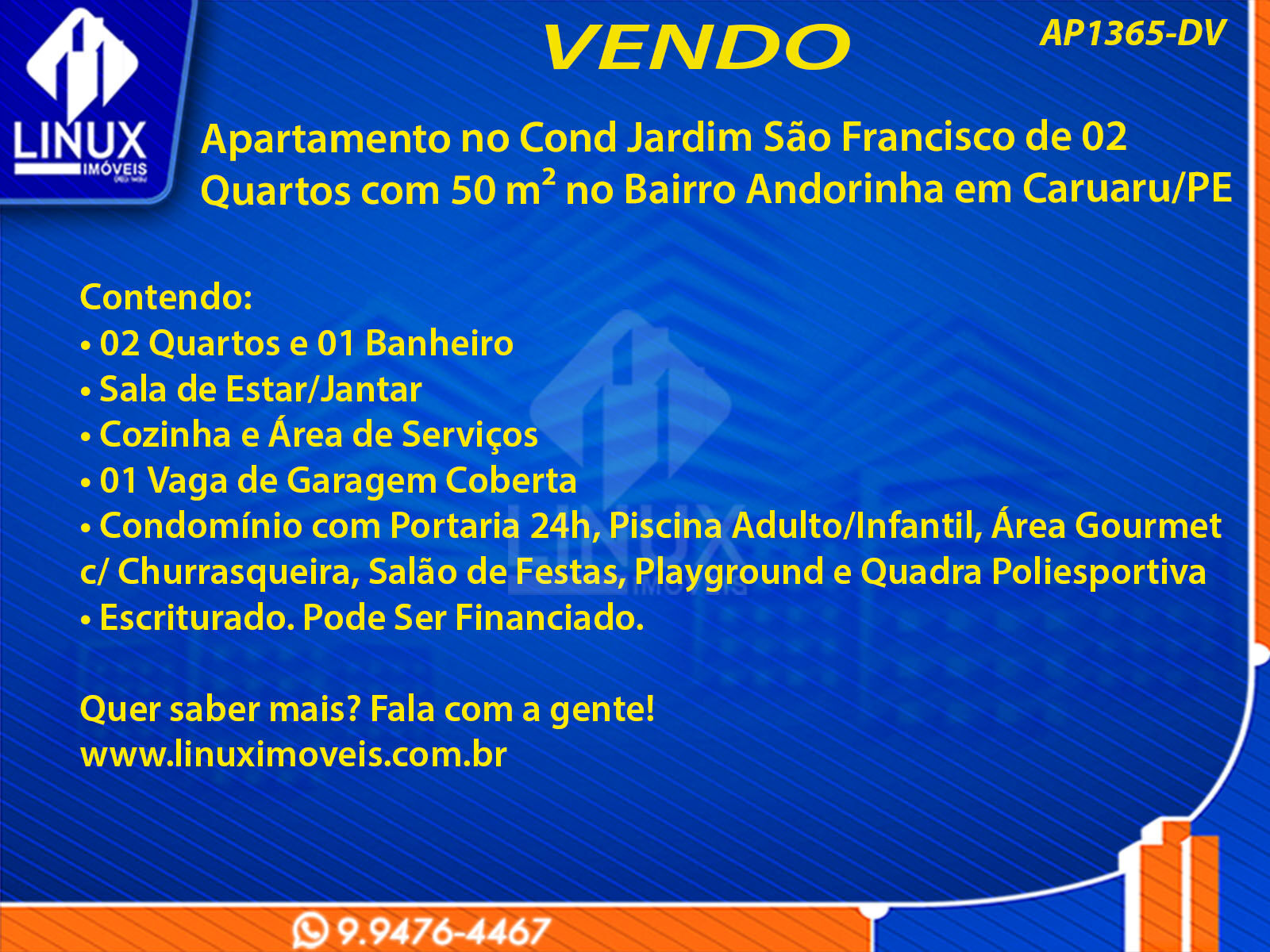 Apartamento no Cond Jardim São Francisco de 02 Quartos com 50 m² no Bairro Andorinha em Caruaru/PE