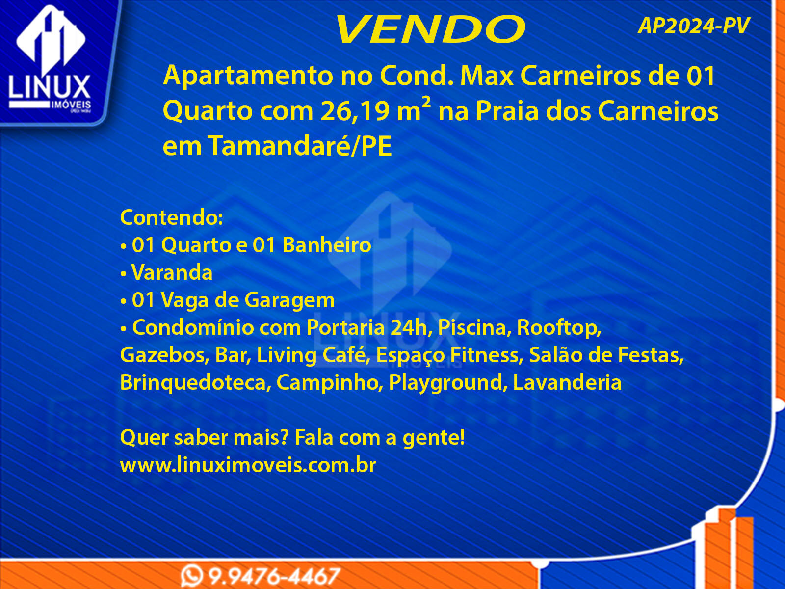 R$330.000,00 / VENDAApartamento no Cond. Max Carneiros na Praia dos Carneiros em Tamandaré/PE à Venda (AP2024-PV)