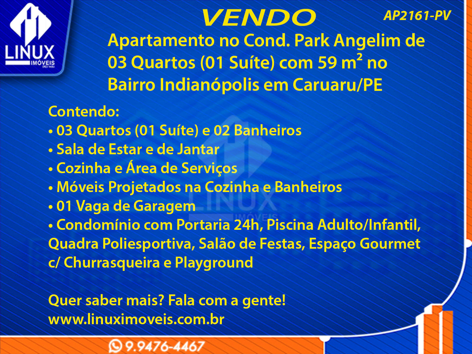 R$270.000,00 / VENDAApartamento no Cond. Park Angelim em Caruaru/PE à Venda (AP2161-PV)