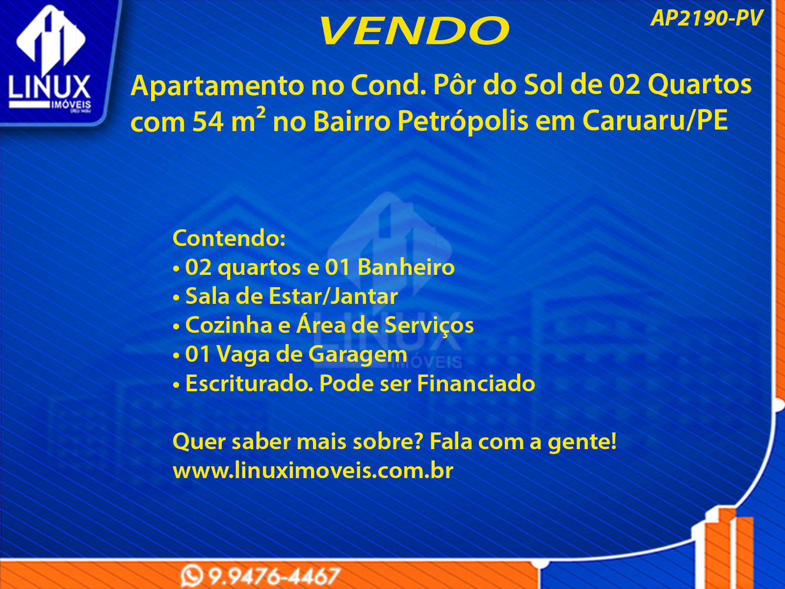 R$180.000,00 / VENDAApartamento no Cond. Pôr do Sol em Caruaru/PE à Venda (AP2190-PV)