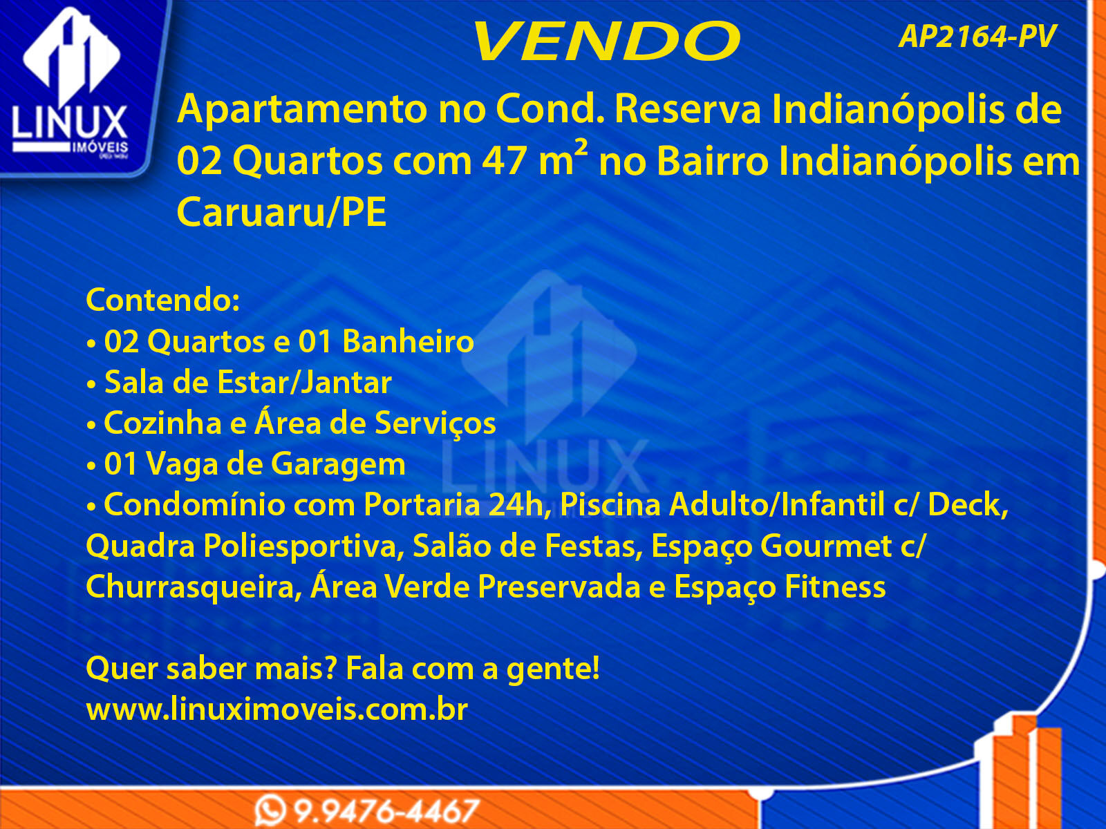 R$200.000,00 / VENDAApartamento no Cond. Reserva Indianópolis em Caruaru/PE à Venda (AP2164-PV)