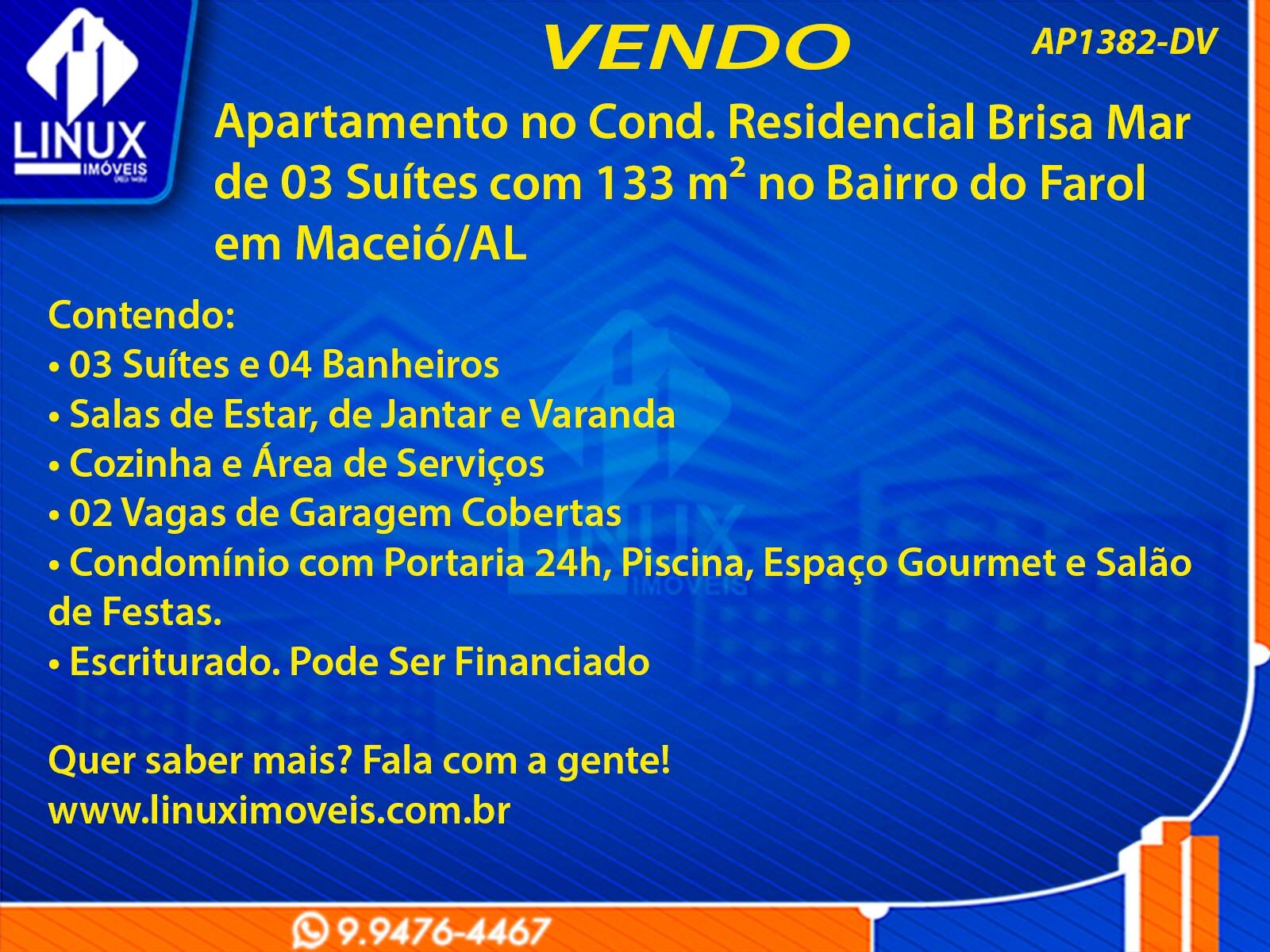 R$1.200.000,00 / VENDAApartamento no Cond. Residencial Brisa Mar em Maceió/AL à Venda (AP1382-DV)