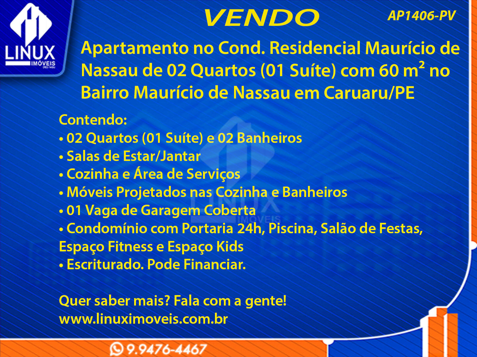 R$450.000,00 / VENDAApartamento no Cond. Residencial Maurício de Nassau à Venda (AP1406-PV)