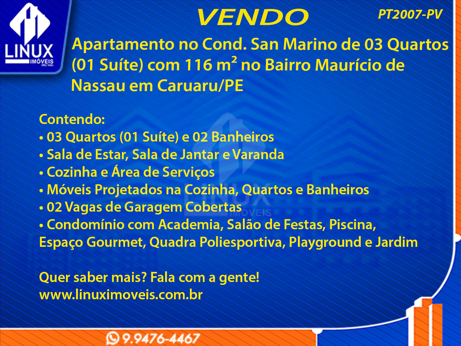 Apartamento no Cond. San Marino em Caruaru/PE à Venda (AP2007-PV)