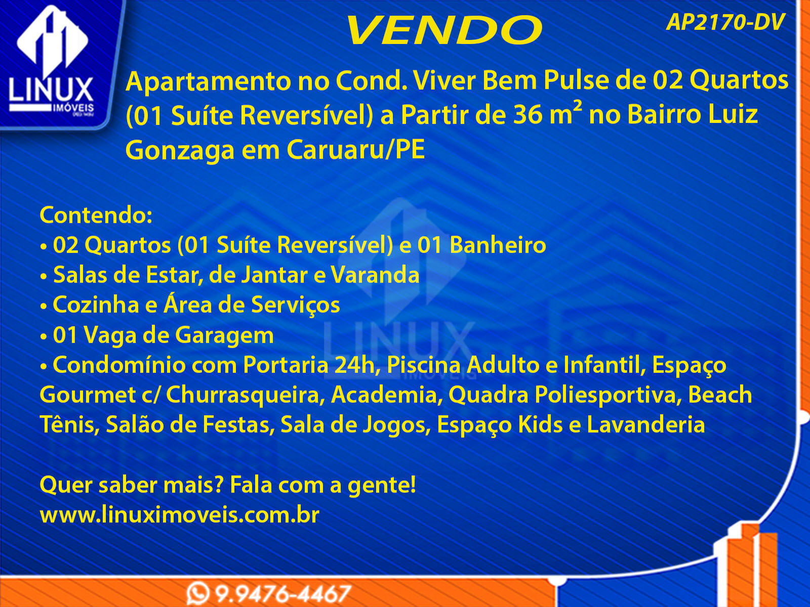R$220.000,00 / VENDAApartamento no Cond. Viver Bem Pulse em Caruaru/PE à Venda (AP2170-DV)