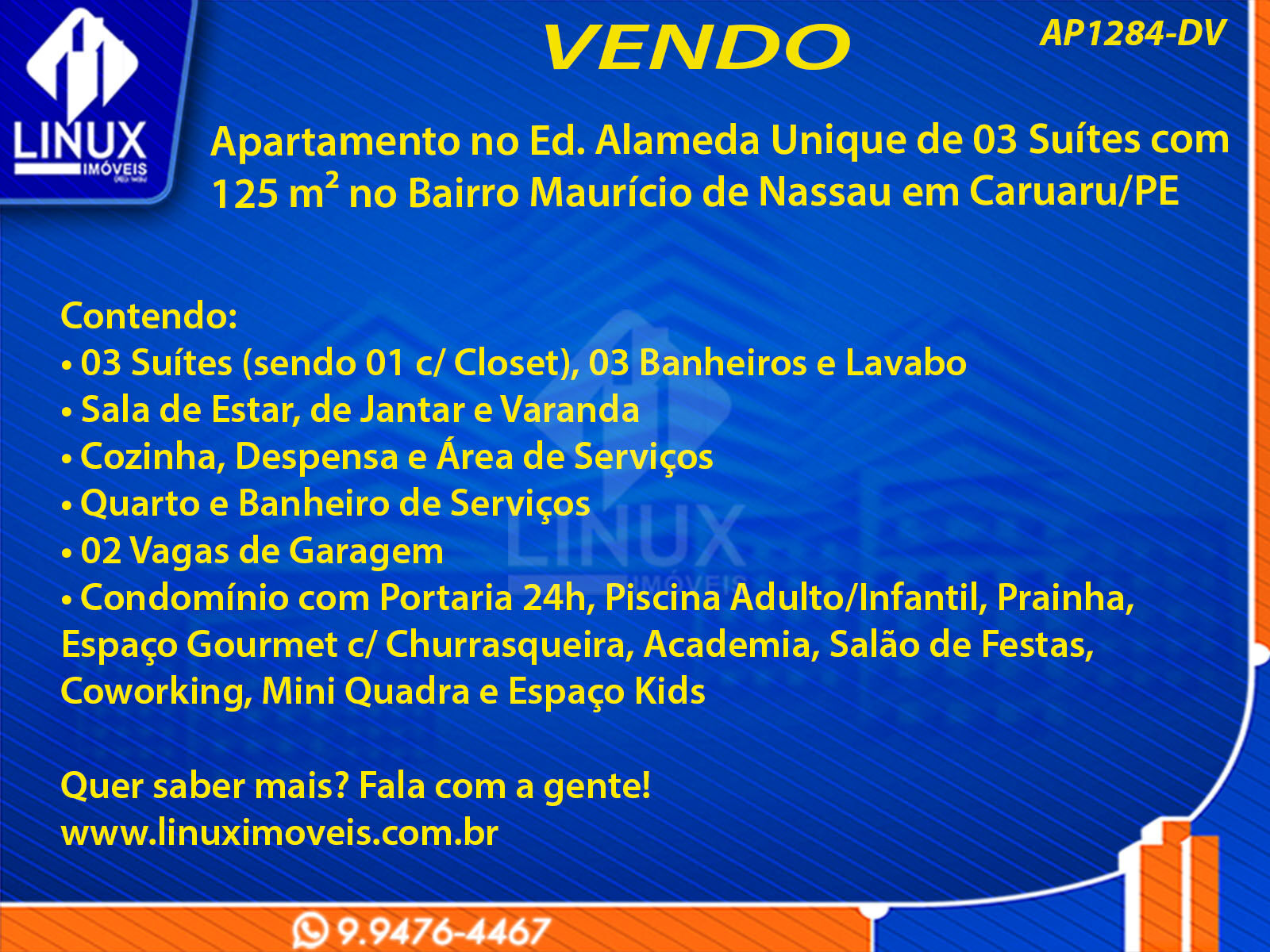 R$1.150.000,00 / VENDAApartamento no Ed. Alameda Unique à Venda (AP1284-DV)
