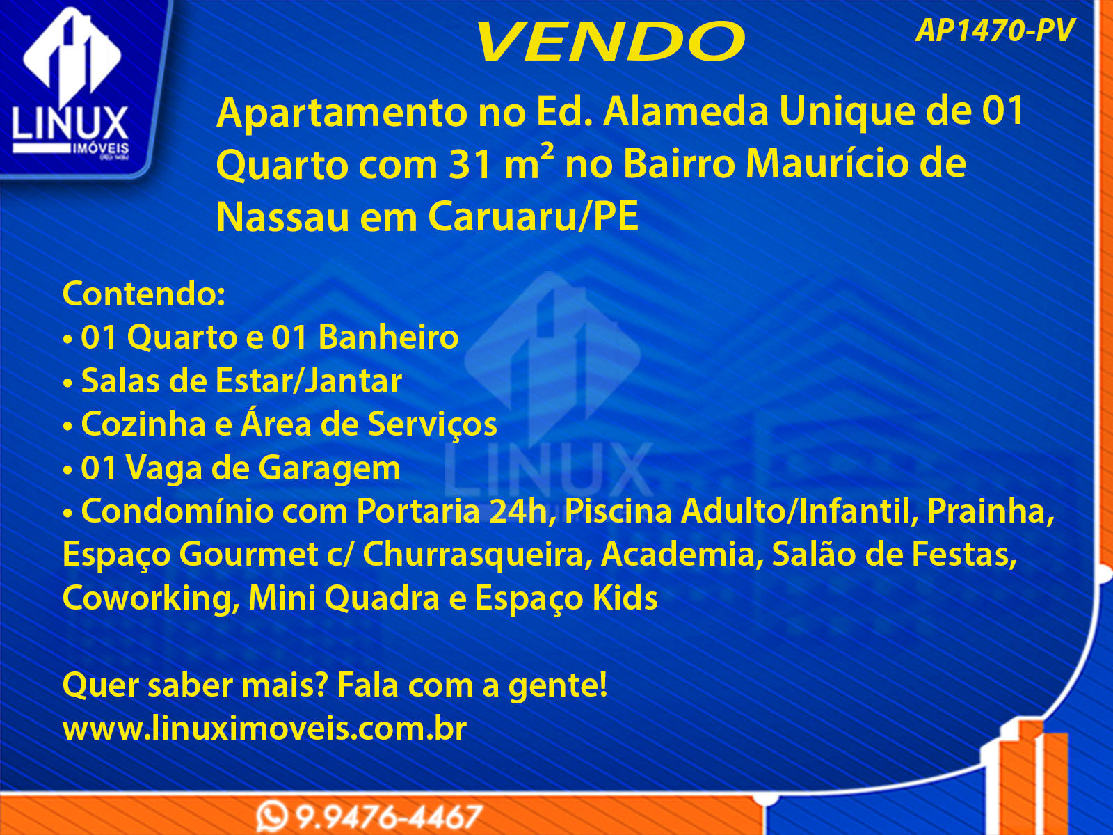 R$300.000,00 / VENDAApartamento no Ed. Alameda Unique em Caruaru/PE à Venda (AP1470-PV)