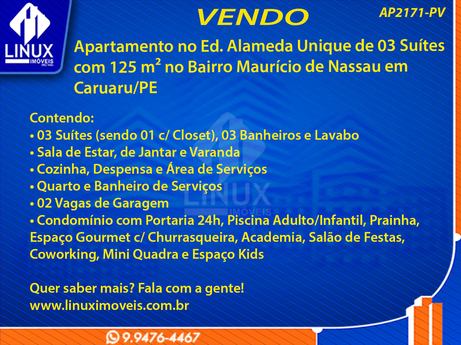 R$1.250.000,00 / VENDAApartamento no Ed. Alameda Unique em Caruaru/PE à Venda (AP2171-PV)