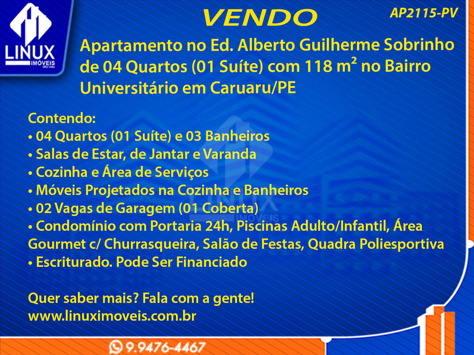 Apartamento no Ed. Alberto Guilherme Sobrinho em Caruaru/PE à Venda (AP2115-PV)