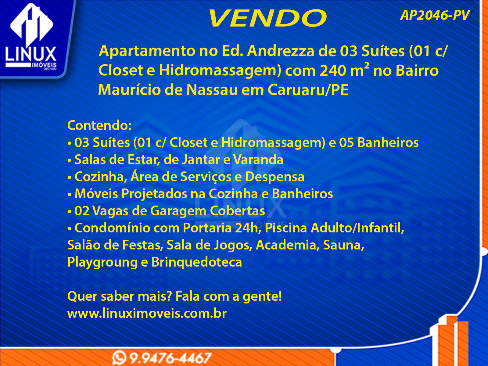 R$850.000,00 / VENDAApartamento no Ed. Andrezza em Caruaru/PE à Venda (AP2046-PV)