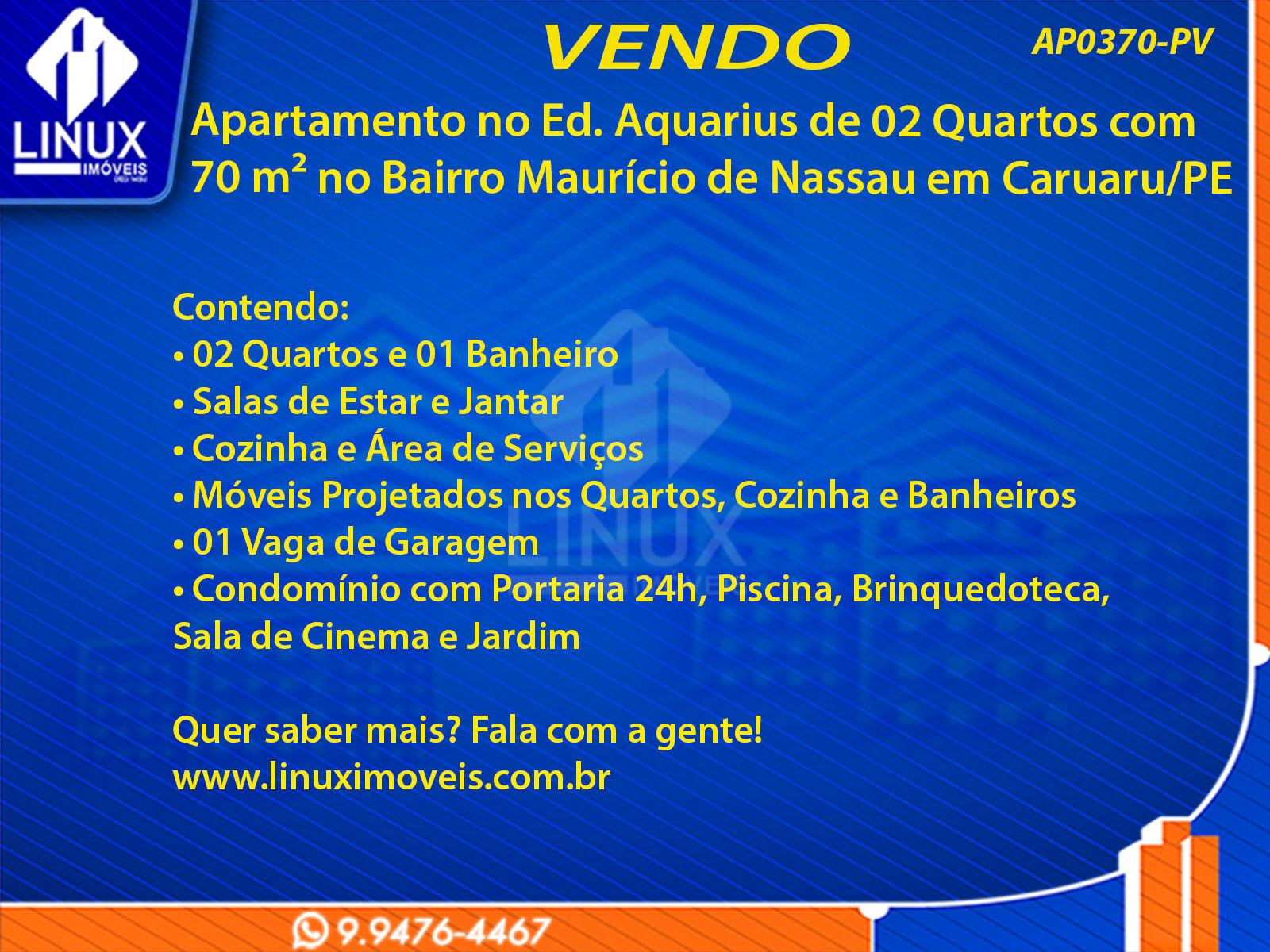 R$270.000,00 / VENDAApartamento no Ed. Aquarius em Caruaru/PE à Venda (AP0370-PV)