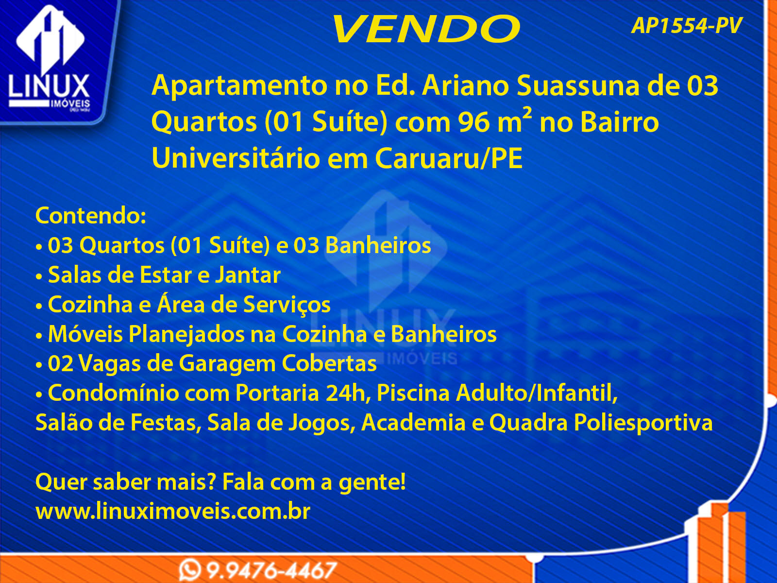 Apartamento no Ed. Ariano Suassuna em Caruaru/PE à Venda (AP1554-PV)