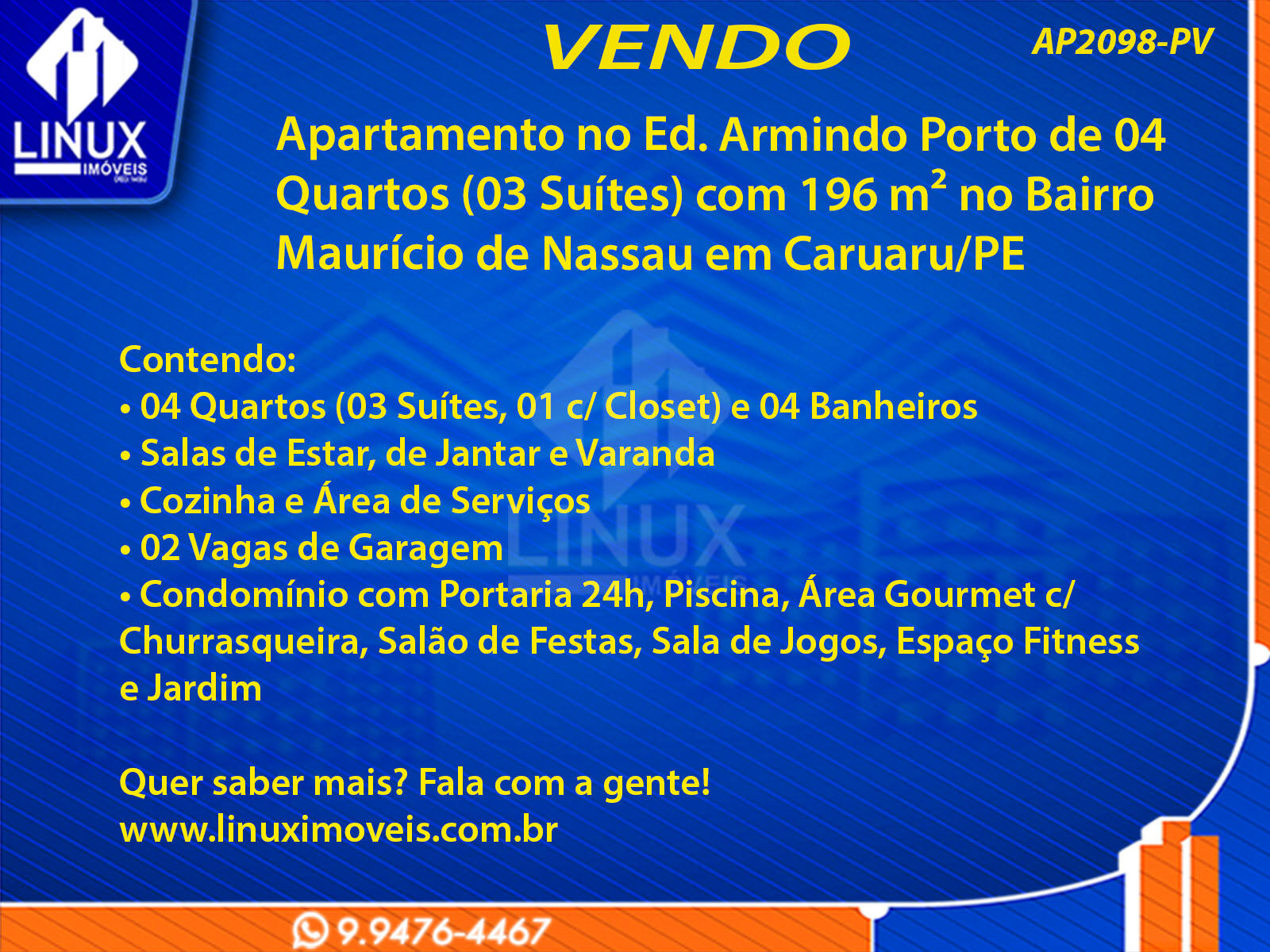 R$850.000,00 / VENDAApartamento no Ed. Armindo Porto em Caruaru/PE à Venda (AP2098-PV)